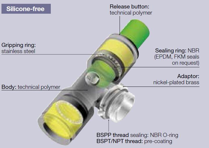 Technical Polymer, Nickel Plated Brass, Rubber |