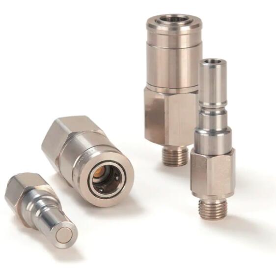 Dry break quick coupling system with nominal diameter 6 for thermal management applications up to 60 bar. Available made of brass/stainless steel.