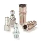 Premium plus quick coupling system with nominal diameter 7.4 for pneumatic and fluid handling applications up to 35 bar. Coupling system with Scandinavian profile. Available made of brass/steel or stainless steel.