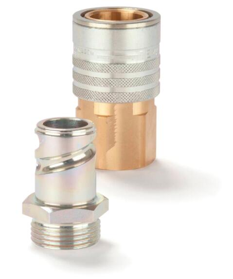 Parker's series 2100 is used mainly in the area of compressed air. The system is particularly suited to large pneumatic plants and compressed air tools with a very high flow. This series has a special safety function, which requires a turn and push/pull movement during connection and disconnection. It also has an automatic pressure release function, which facilitates easy handling. A coupling system with very high flow rates, robust design, high corrosion resistance and a safety function.