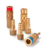 Coded quick coupling system with nominal diameter 7.4 especially for use with fuel gas and oxygen up to 35 bar. Available made of ungreased brass.