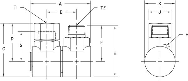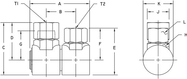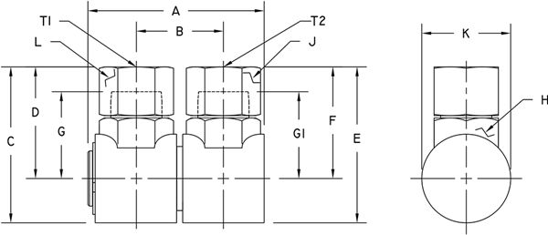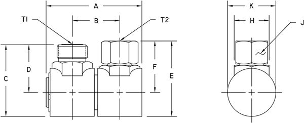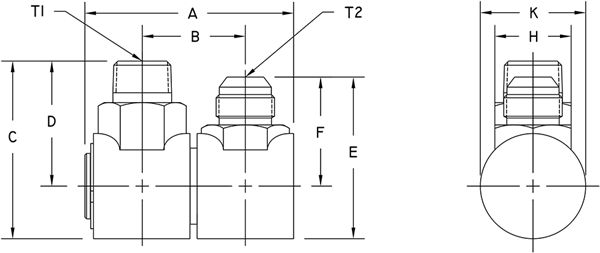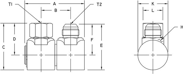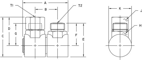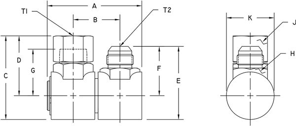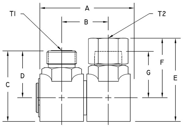 | Female O-Ring Face Seal Union to Male O-Ring Face Seal |