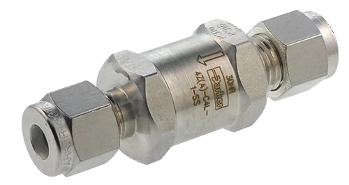 同時,客戶還選用了CO系列單向閥,該閥適用于需要嚴格消除逆流的清潔工況和氣體應用,尤其適用于小分子量氣體的應用,是市場上為數不多的一款公布氦檢漏率的單向閥。