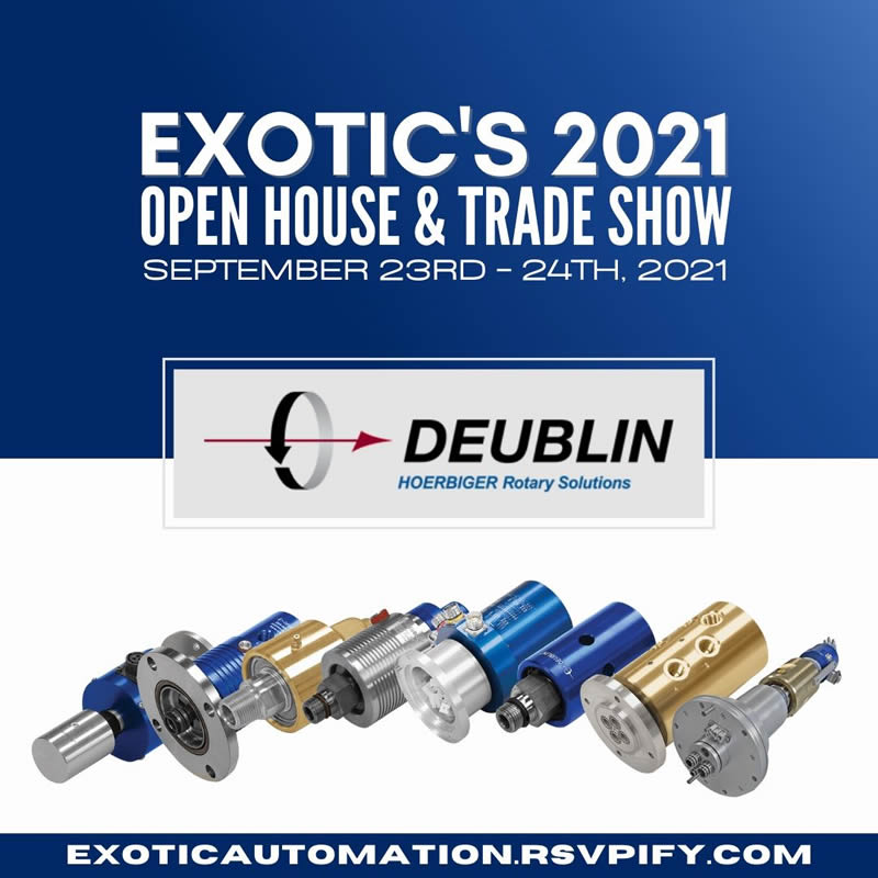 Deublin is proud to be partnered with distributor Automation. We will be hosting a booth at Exotic's upcoming trade show. Stop by with all your rotating union questions and needs! Our upper Midwest District Manager, Greg, will be there to assist you! To register for the show, click here: #automation #manufacturing #logistics #tradeshows #machinetools #deublin