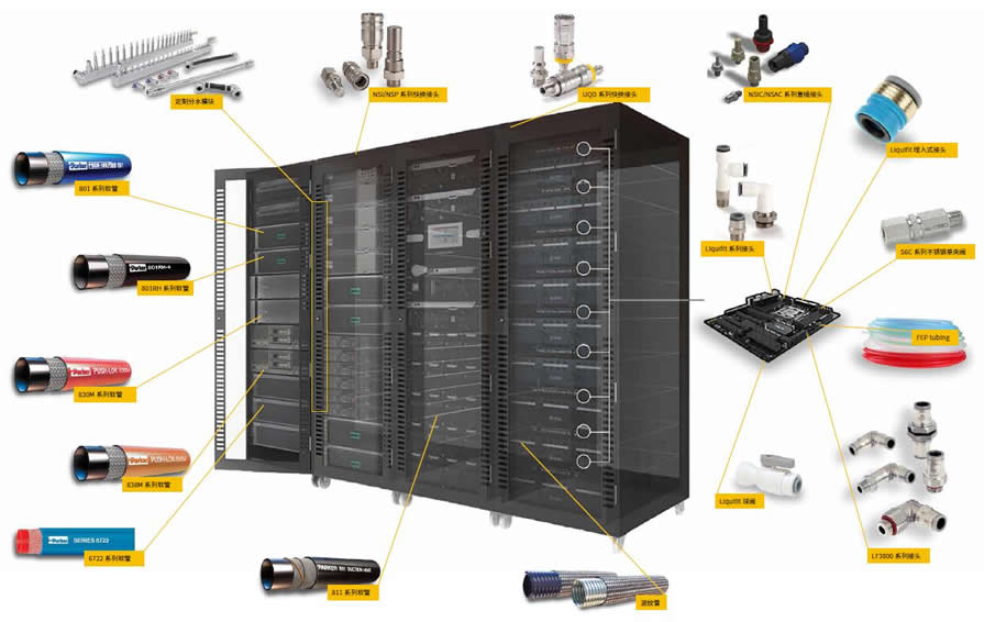 合性解決方案,設計實現大流量、低壓降、無泄漏的管路連接產品,使液冷系統高效、穩定、安全的運行。