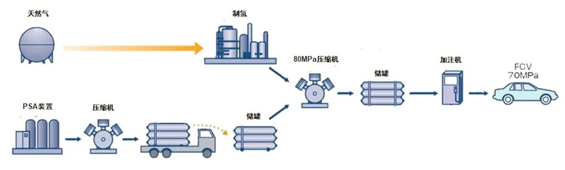 氫能是一種能量密度很高、無(wú)燃燒廢氣排放的高效和清潔的能源,具有廣闊的應(yīng)用前景。燃料電池將氫轉(zhuǎn)化為電能,而加氫設(shè)施為燃料電池的續(xù)航提供必要的補(bǔ)充。使用35MPa或 70MPa的加氫壓力, 三到五分鐘的加注,即可使家用汽車持續(xù)行駛500公里左右。