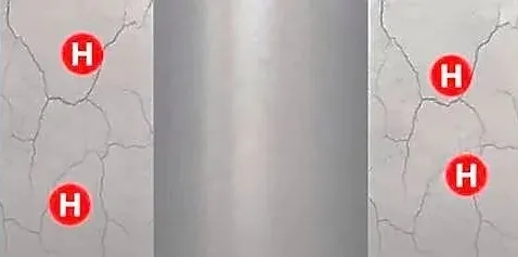 氫脆是一種更危險(xiǎn)的特性,尤其是在高壓的條件下。氫原子透過(guò)金屬表面的微小缺陷進(jìn)入到金屬內(nèi)部,并與其他氫原子結(jié)合成為氫氣分子,造成內(nèi)部應(yīng)力并最終破壞金屬的完整性。