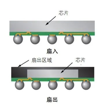 如前所述,封裝工藝的主要用途包括將半導(dǎo)體芯片的信號發(fā)送到外部,而在晶圓上形成的凸塊就是發(fā)送輸入/輸出信號的接觸點。 這些凸塊分為扇入型(fan-in) 和扇出型 (fan-out) 兩種,前者的扇形在芯片內(nèi)部,后者的扇形則要超出芯片范圍 。我們將輸入/輸出信號稱為I/O(輸入/輸出),輸入/輸出數(shù)量稱為I/O計數(shù)。I/O計數(shù)是確定封裝方法的重要依據(jù)。如果I/O計數(shù)低就采用扇入封裝工藝。由于封裝后芯片尺寸變化不大,因此這種過程又被稱為芯片級封裝 (CSP) 或晶圓級芯片尺寸封裝 (WLCSP)。如果I/O計數(shù)較高,則通常要采用扇出型封裝工藝,且除凸塊外還需要重布線層 (RDL) 才能實現(xiàn)信號發(fā)送。這就是“扇出型晶圓級封裝 (FOWLP)”。