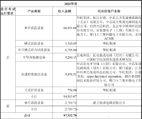 2020年,盛美半導體獲得多家國內半導體廠的訂單,合計銷售設備125臺,其中僅有4臺設備存在試運行要求。