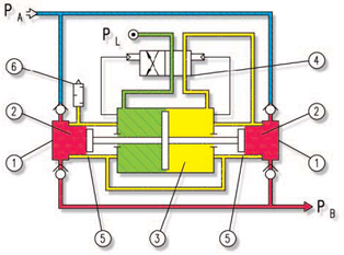 滑閥由兩個二位二通閥(先導(dǎo)閥(7))控制。先導(dǎo)閥由氣體活塞控制其機械運動。先導(dǎo)閥不斷地填充或排空滑閥室。由單向閥(入口單向閥和出口單向閥(1))控制高壓活塞來提供流量。