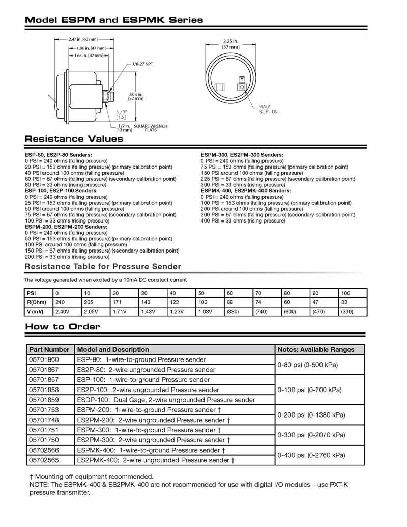 ESPMK-400: 1-wire-to-ground Pressure sender .