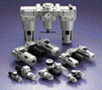 空氣過濾組合、空氣過濾器、減壓閥、油霧器、過濾減壓閥、油霧分離器、微霧分離器、穩定啟動電磁閥、壓力表、微型減壓閥、減壓氣閥、三通釋放式截流閥、壓力開關、管接頭、單向閥、T型隔板、隔板、托架、膜片型流量開關、漿葉型流量開關、增速繼動器、鎖定閥、精密減壓閥、壓力開關、機械式壓力開關、氣控比例定位器、電-氣比例定位器、電訊號-氣壓轉換器、電-氣比例閥、過濾減壓閥、梭動閥、氣-電繼電器、氣源指示器、氣動延時閥、氣缸限流器、管道限流器、消聲器、排氣潔凈器、限流閥帶消聲器、單向止回閥、快速排氣閥、快速接頭、快速排氣閥帶限流器、快速接頭集束分氣、微型接頭、氣喉管、喉管脫離器、螺旋管、排管、管道剪刀、多管扣件、高速旋轉接頭、萬用螺紋接頭、插入式管接頭、旋式緊鎖接頭、難燃性快速接頭和軟管、不帶靜電快速接頭和軟管