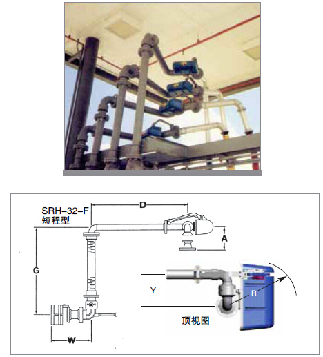 OPW生產的彈簧平衡型軟管灌裝臂有短程(SRH-32)和長程(LRH-32)兩種型號。與重力平衡式軟管灌裝臂相似,彈簧平衡式軟管灌裝臂通常在存放時處于水平位置,只需要稍稍向上或向下移動使API接頭與槽車上的陽端接頭對齊即可。