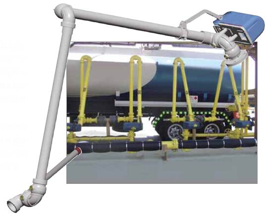 “A”字型緊湊的外形使灌裝臂能夠相對(duì)靠近地安裝在一起,往往安裝在與槽車聯(lián)接要求的高度大體相當(dāng)?shù)牧⒅稀K鼈円部梢韵噜彽匕惭b在階梯上升的立柱上,互相交疊,從而可對(duì)多艙室的槽車同時(shí)進(jìn)行灌裝。
