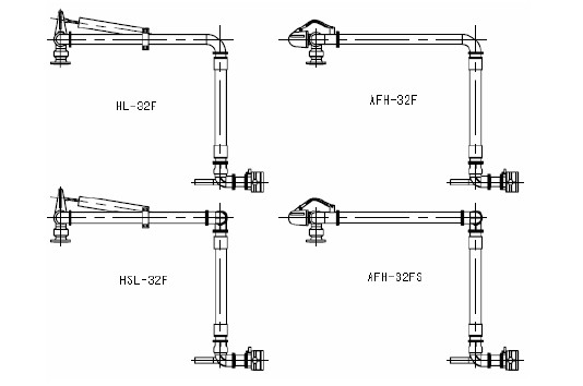 底部灌裝的優點之一就是可以進行油氣回收,我們提供的油氣回收臂有如下圖所示的幾種形式。