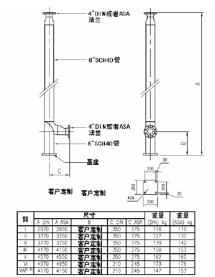 鑒于,以上比較我們推薦使用采用結構緊湊的扭力彈簧的平衡方式。如圖表示的是輸油臂的幾種基本形式: