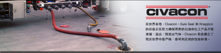 Civacon專業產品用于石油,化工,干散貨箱,有助于防止泄漏,滿溢和逃逸排放:接入端口,沙井,焊環,艙口蓋,填充蓋,旋啟式止回閥,高壓真空艙口,泄壓閥,蒸汽閥,底部裝載設備,運輸肘部,溢出檢測設備,蒸汽回收適配器。在固體散裝運輸用的產品如手孔、人孔、艙蓋、灌裝口蓋板、壓力 / 真空艙門、閥門、焊接圈等方面, Knappco 產品是保證危險性散裝在操作和運輸中處于安全封裝狀態的首選品牌。 Knappco 產品都經過精密的設計和制造,能符合范圍寬廣的行業和應用領域內的需求。 50 多年來,散裝粉料槽罐的裝配廠商始終信賴 Knappco 品牌。 Civacon / Knappco / Sure Seal specializes in products and systems to safely load, monitor and unload petroleum, dry bulk and petro chemical cargo tanks, for the road and rail industries. We are a global leader in providing Bottom Loading, Vapor Recovery and Overfill Dectection Systems for the petroleum industry. A world class provider of Pressure Discharge and Vacuum Loading Systems for Rail & Road Dry Bulk. As well as, Pressure/Vacuum Relief and Safety Access/Insepection equipment for the Agriculture and Industrial Storage Tank Industry. Whether your need is at the terminal loading rack, or outfitting a fleet of tankers or rail cars, our systems set the standard for real-world performance in the most rigorous and demanding applications. If the safe, profitable handling of hazardous liquids and dry-bulk commodities is your concern, trust Civacon.
