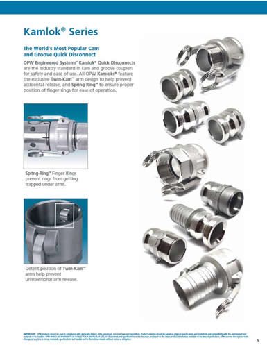 OPW工程系統(tǒng)公司是的干式快換接頭和快速接頭的生產(chǎn)廠商,所提供的產(chǎn)品能夠滿足各種流體輸送用途的需要。OPW專業(yè)為各行業(yè)提供危險液體輸送解決方案,其產(chǎn)品在全球得到了非常廣泛的應用。公司提供完整系列的接頭產(chǎn)品,包括 Kamlok和 Autolok快速接頭,對于要采用干式快換接頭的液體,我們提供Kamvalok, Drylok and Epsilon, 三種產(chǎn)品。對于高溫高壓下的密封應用,Drylok品牌提供新型的高性能陰端接頭和陽端接頭。OPW工程系統(tǒng)公司是的干式快換接頭和快速接頭的生產(chǎn)廠商,所提供的產(chǎn)品能夠滿足各種流體輸送用途的需要。在過去的60多年時間里我們的產(chǎn)品得到了非常廣泛的應用,適用的工業(yè)領域包括: 石油產(chǎn)品、 脂肪酸、 液化氣、 瀝青、 各類溶劑、 危險性和腐蝕性化學品等。