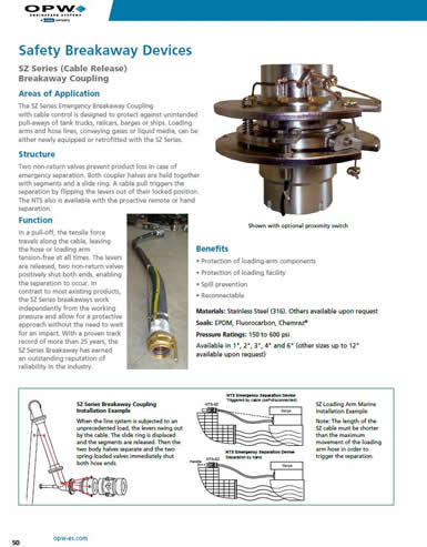 美國OPW流體運輸集團是多福集團公司的一個組成部分(OPW Fluid Transfer Group, part of Dover Corporation),由多家占據(jù)市場領先地位、專業(yè)從事危險性散裝產(chǎn)品安全操作和運輸所需之方案的設計、制造和銷售的運行公司組成。OPW流體運輸集團的各組成公司在各地與客戶結成合作,確保危險性散裝產(chǎn)品的安全加工、灌裝、運輸和卸載,并防止價格昂貴的石油和化學品跑料、儲槽充裝過量及易揮發(fā)氣體的排放等。不論是在化工生產(chǎn)、油品灌裝、鐵路槽車、公路槽車或是固體散裝物料運輸?shù)阮I域里,包括條件-苛刻、要求-高的應用用途中,OPW生產(chǎn)的設備系統(tǒng)在安全、性能和服務等方面均堪稱楷模。 OPW是的干式快換接頭和快速接頭的生產(chǎn)廠商,所提供的產(chǎn)品能夠滿足各種流體輸送用途的需求。OPW產(chǎn)品的應用十分廣泛,包括石油產(chǎn)品、脂肪酸、液化氣、瀝青、各類溶劑以及其他危險性、腐蝕性化學品的輸送,適用于多種工業(yè)領域。