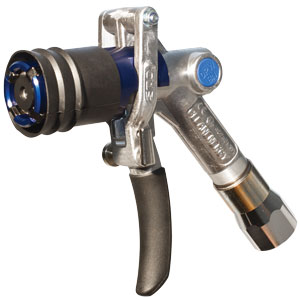 ◆ 新型的人體工學設計 – 兩層絕熱性樹脂外殼用來保護內部構件,即使跌落也不致損壞,同時保護操作者的手部不會因高速液化氣流動產生的低溫凍傷。只需要輕微用力即可使噴嘴嚙合,而合理的脫卸按鈕使松開的操作十分方便。操控桿設有護罩。