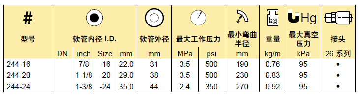 Parker 244- 不剝膠制冷軟管產(chǎn)品選型表格