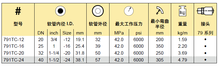 791TC-24 40 1-1/2 -24 38.1 57 42.0 6000 305 4.79