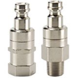 Parker DM Series Couplers (hydraulic) up to 250 psi connect with DM Series Nipples.Parker's DM Series are double shut-off special purpose miniature quick couplings. They offer push to connect operation in a miniature size. Couplers and nipples are available in 1/8" size only with a pressure rating of 250 psi.