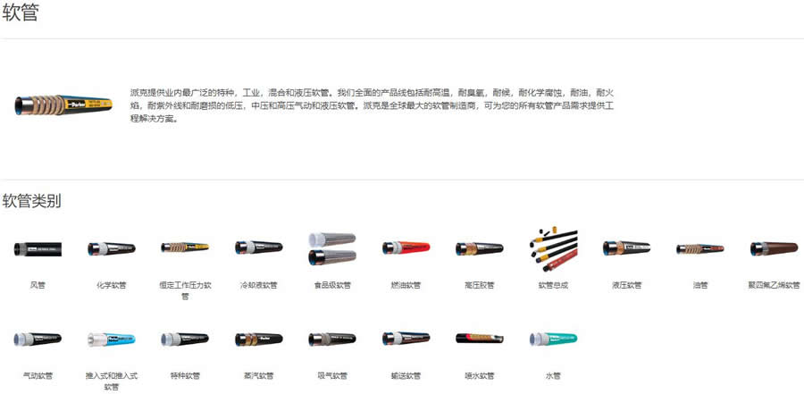 派克提供業內廣泛的特種,工業,混合和液壓軟管。我們全面的產品線包括耐高溫,耐臭氧,耐候,耐化學腐蝕,耐油,耐火焰,耐紫外線和耐磨損的低壓,中壓和高壓氣動和液壓軟管。派克是的軟管制造商,可為您的所有軟管產品需求提供工程解決方案。Parker offers the range of specialty, industrial, hybrid and hydraulic hose in the industry. Our comprehensive line includes low pressure, medium pressure and high pressure pneumatic and hydraulic hoses that are resistant to heat, ozone, weather, chemicals, oil, flames, UV and abrasion. Parker is the largest hose manufacturer in the world and provides an engineered solution to all of your hose product needs.