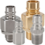 PH version couplers and nipples are valved with a connect-under-pressure feature. These steel couplers and nipples allow connection with H Series valved couplers and nippleswhen there is residual pressure on the PH coupler/nipple side.IH version couplers are steel with a cylindrical valve designed specifically for pneumatic use. When paired with an unvalved/plain H Series nipple, it functions as a durable single-shut-off connection.