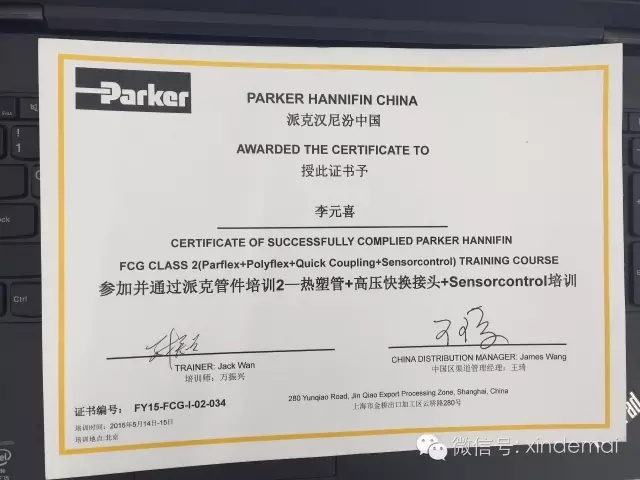 Parker中高壓熱塑管 + 高壓快換接頭 + Sensorcontrol產品培訓