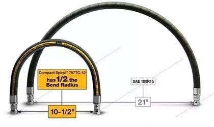 軟管的最小彎曲半徑是指軟管可以在彎曲的情況下,以最大允許工作壓力工作的最小半徑。彎曲半徑將會提供更強的靈活性并方便布設。