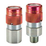 Parker's FH Series are high pressure non-spill quick couplings that will not connect with lower pressure quick couplings. The red finish makes these couplings easy to identify as high pressure (10,000 psi). Coupler sleeve lock feature guards against accidental disconnection. Couplers and nipples are available in 3/8"" size only.