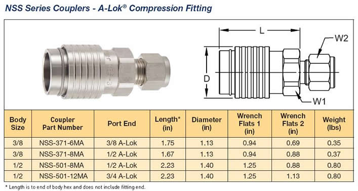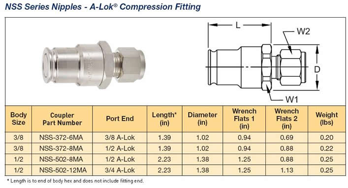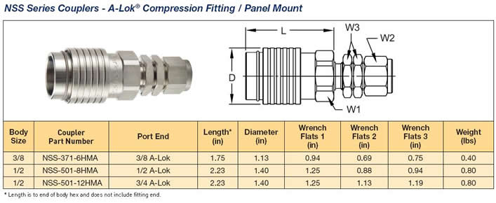 NSS Series Couplers - A-Lok. Compression Fitting / Panel Mount
