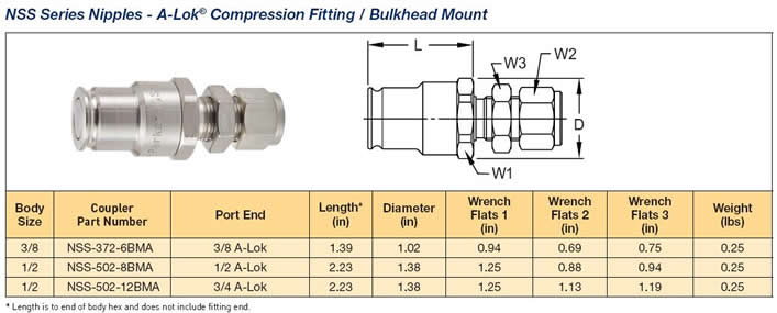 NSS Series Couplers - A-Lok. Compression Fitting / Bulkhead Mount
