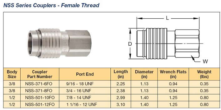 - NSS Series Compact, Non-Spill Stainless Steel Quick Couplings
