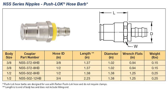 NSS Series Couplers - Push-LOK. Hose Barb*