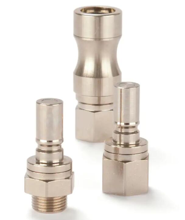 Dry break quick coupling system with nominal diameter 6 for pneumatic and fluid handling applications in sensitive environments up to 15 bar. Available made of brass or stainless steel.