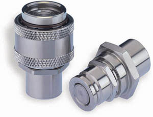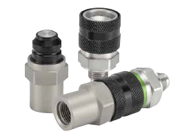 Compact, lightweight, push-to-connect couplings for small space applications. 28-1 and 29 Series nonspill valving offers minimal spillage and air inclusion while providing maximum flow and low pressure drop. Their small envelope size and aluminum material option are added pluses. The 28-1 Series is rated for pressures up to 1,000 psi (69 bar) and is available in 1/4" to 2" body sizes. A visual indicator confirms connection. The 29 Series is rated for pressures up to 5,500 psi (37 bar) and comes in 1/8" to 1-1/4" body sizes.