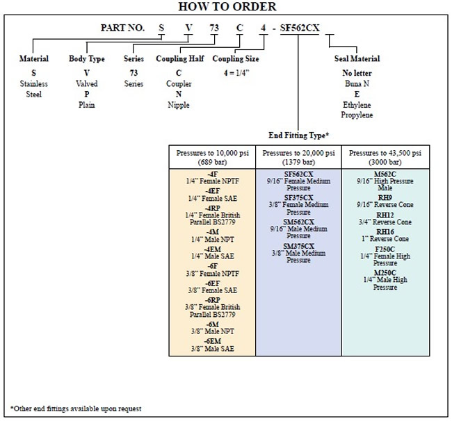 SV73C4-M250CE Stainless Steel Valved Coupler, 1/4" x 1/4" Male High Pressure, Up To 43500 psi Ethylene Propylene