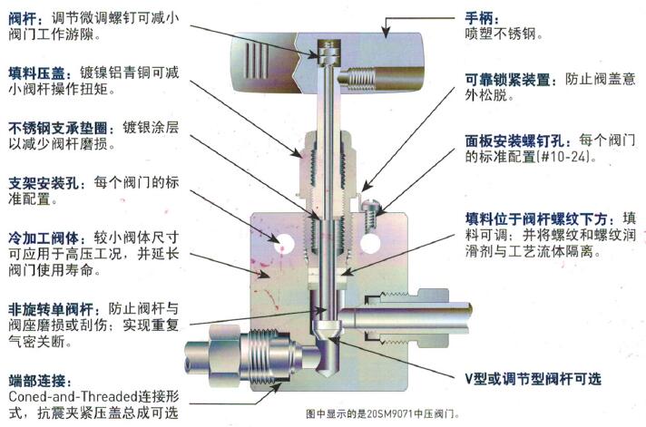 派克 Autoclave 的SM系列針形閥是非旋轉(zhuǎn)上升式閥桿設(shè)計(jì),工作壓力可達(dá)20,000 psi(1379 bar).管道尺寸從1/4" 到 1-1/2".鋼管連接采用派克 Autoclave Engineers 錐形和螺紋設(shè)計(jì)。