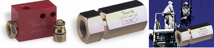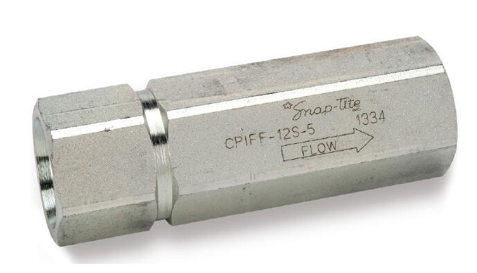 Snap-Tite CPIFF Check Valves : The soft seat guided poppet design and 4:1 safety factor make this check valve an excellent choice for a wide variety of applications where free flow in one direction and blocked flow in the reverse direction is required. The streamlined soft seated poppet offers minimum restriction to flow and positive shut-off.