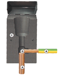 1、把要連接的導線(A)放置在熔腔(B)內,