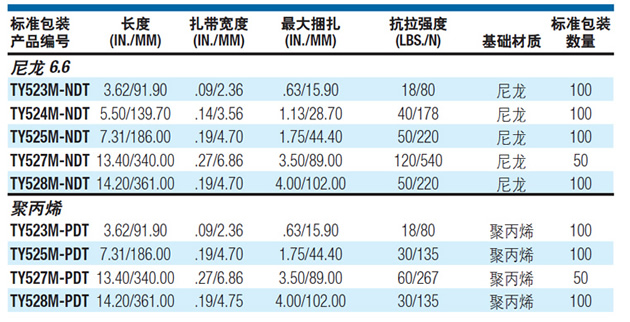 TY-RAP 6.6尼龍電纜扎帶—本色尼龍