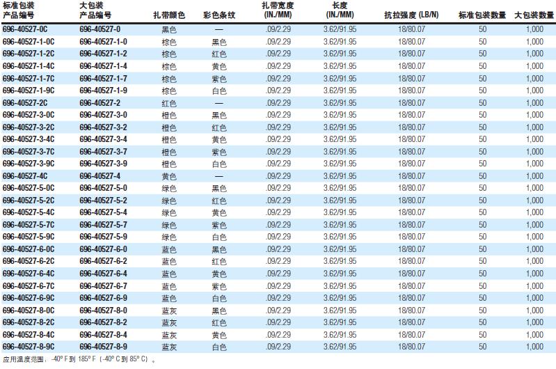 Thomas&Betts在50多年前首創了高性能的電纜扎帶,采用防紫外線高強度尼龍材料。獨創的Grip Streel鎖緊系統裝置。操作簡單迅速,有各種尺寸及綁扎力可供選擇。