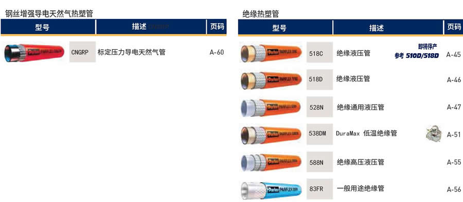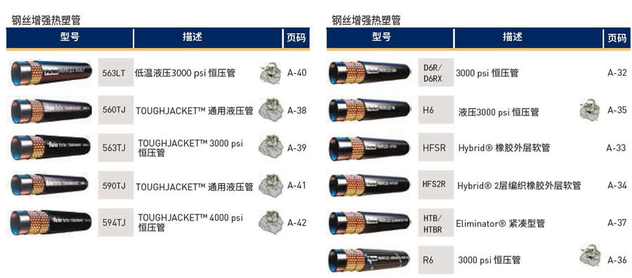 注意: *列出的溫度是對應材質常規的最低和最高溫度。 但是,制造過程的其他因素可能會限制工作溫度。有關軟管的實際工