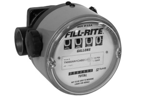 Fill-Rite TN Meters measure flows up to 60 gallons per minute, a viscosity range from 1 to 50,000 cSt, and they can handle temperatures from -15° F to +180° F.